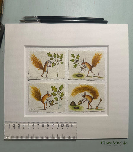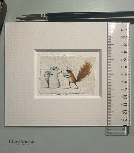 All originals are painted in watercolours - Schmincke, Rowney and Windsor & Newton with miniature brushes I buy in Cornelissen & Sons near the British Museum, London. Entering the shop is like stepping back in time with walls of wooden drawers containing all sorts of brushes, nibs and the like. Large jars of pigments in luscious hues and the promise of inspiring papers, brushes, pastels, paints abound. It’s a real treat. I paint on cold pressed, acid free, fine grain watercolour paper (300gsm) which is responsibly sourced and made in England. All my originals come unframed but are double mounted at no extra cost.